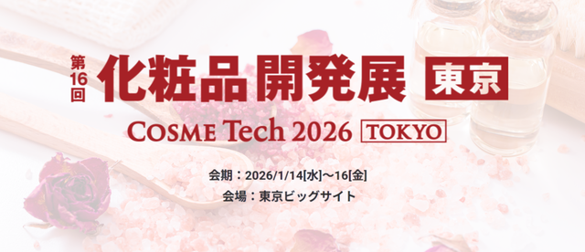2026年1月14日(水)~1月16日(金)開催の、化粧品開発展2026 に出展いたします。